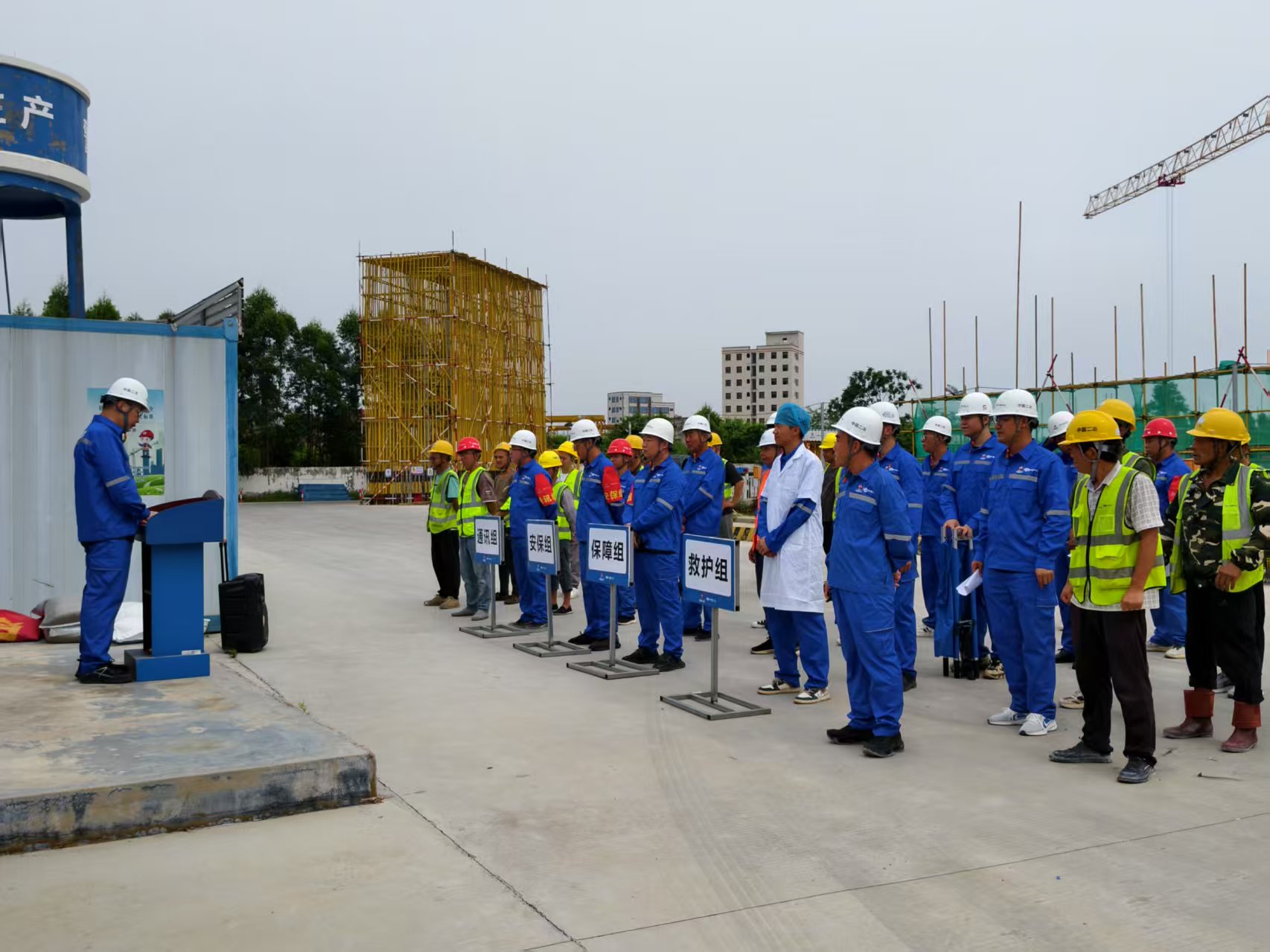 為應對夏季高溫天氣,保障施工安全,6月19日,中國二冶湛江東海島產業園安心家園一期項目組織開展防中暑應急演練,項目管理人員及施工人員共50余人參加。