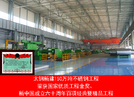 山西太鋼新建150萬噸不銹鋼工程,是山西鋼鐵集團(tuán)有限公司“十五規(guī)劃”中的重點(diǎn)項目。獲得“國家優(yōu)質(zhì)工程金質(zhì)獎”、“新中國成立六十周年百項經(jīng)典暨精品工程”、改革開放三十五周年百項經(jīng)典暨精品工程。
