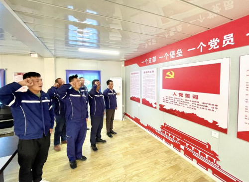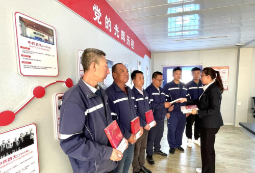 在學(xué)黨史、悟思想環(huán)節(jié),新型建筑分公司副總經(jīng)理帶領(lǐng)大家學(xué)習(xí)《弘揚(yáng)西柏坡精神》,觀看西柏坡教育視頻,舉行授旗儀式,并在黨旗下重溫入黨誓詞。通過(guò)分享西柏坡的故事、贈(zèng)送《西柏坡精神》等學(xué)習(xí)書(shū)籍,用革命先烈們堅(jiān)韌不拔、無(wú)私奉獻(xiàn)的精神鼓舞大家堅(jiān)守初心使命,展示了項(xiàng)目部在工程建設(shè)中積極發(fā)揮黨支部戰(zhàn)斗堡壘作用,引導(dǎo)廣大黨員干部做到學(xué)史明理、學(xué)史增信、學(xué)史崇德、學(xué)史力行,激勵(lì)黨員干部深耕細(xì)作、精細(xì)管理,在黨史學(xué)習(xí)教育中立足本職工作,把紅色教育的收獲轉(zhuǎn)化為扎實(shí)做好本職工作的動(dòng)力。