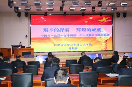 在集中學(xué)習(xí)環(huán)節(jié),公司黨委特邀請了內(nèi)蒙古大學(xué)馬克思主義學(xué)院副院長、傅鎖根教授給大家進(jìn)行了《艱辛的探索 輝煌的成就—中國共產(chǎn)黨百年奮斗歷程、偉大成就及其歷史啟迪》專題黨史講座,傅院長從“中國共產(chǎn)黨歷史發(fā)展的主題主線、主流本質(zhì);中國共產(chǎn)黨書寫的偉大成就;中國共產(chǎn)黨奮斗歷程的歷史啟示”等三個(gè)方面,用生動(dòng)的語言、豐富的案例、詳實(shí)的資料,科學(xué)系統(tǒng)地解讀了中國共產(chǎn)黨的百年奮斗歷程,對公司廣大黨員干部深刻學(xué)習(xí)領(lǐng)會(huì)、全面準(zhǔn)確把握中國共產(chǎn)黨的百年奮斗歷程,具有很強(qiáng)的針對性和指導(dǎo)性。整場報(bào)告主題鮮明、深入淺出、內(nèi)涵豐富、分析透徹、見解深刻,既有透徹的理論闡述,又有豐富生動(dòng)的實(shí)例;既有理論高度又有現(xiàn)實(shí)針對性,闡釋了中國共產(chǎn)黨的百年奮斗歷程的精髓,大家受益匪淺。