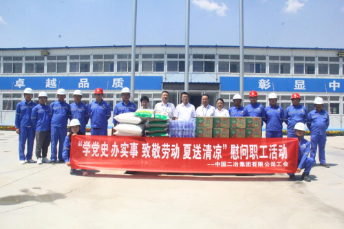 炎炎烈日送清涼,關愛員工暖人心。7月13日,中國二冶啟動“致敬勞動 夏送清涼”慰問職工活動,公司黨委書記、董事長徐永鋒,總經理、黨委副書記高文華等領導紛紛來到施工現場,將綠豆、白糖等防暑慰問品送到一線員工手中,為他們送去了親切問候和濃濃關懷。